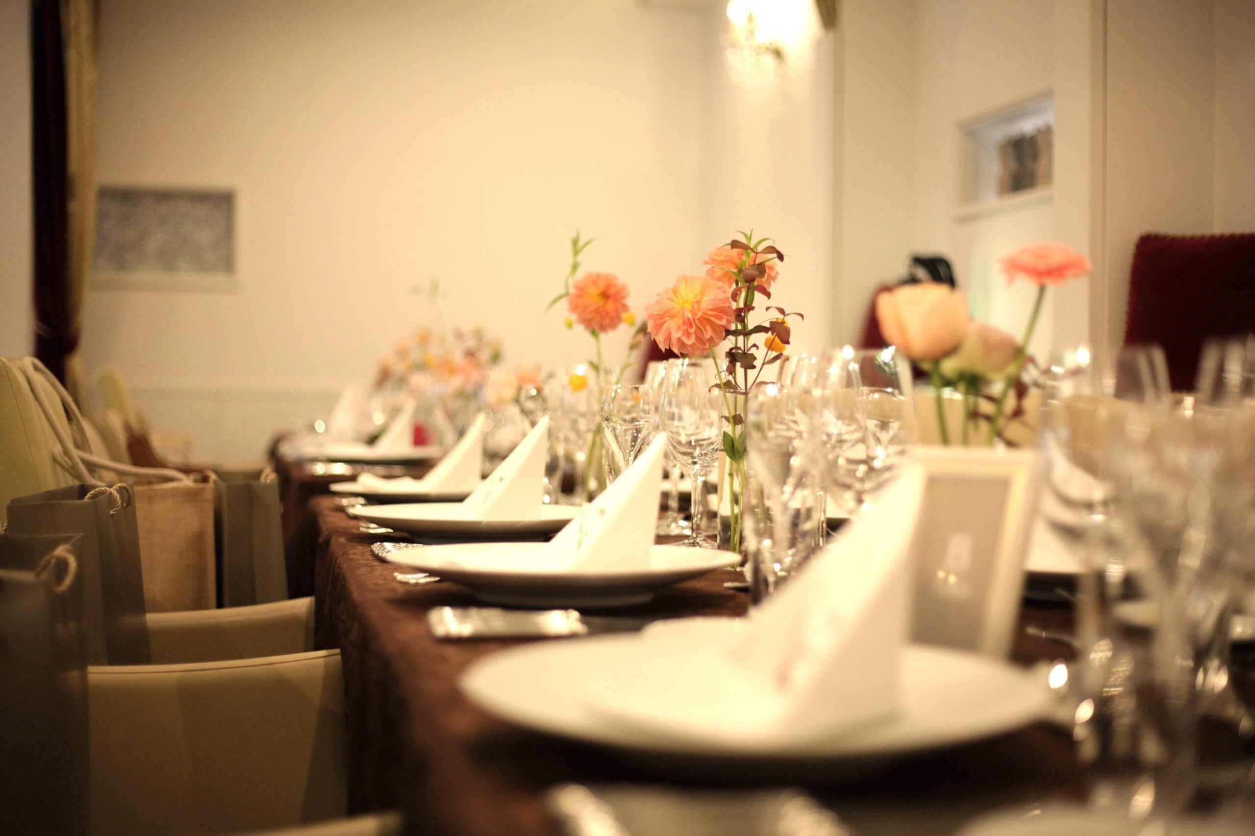 先程のスペースの問題と同じなのですが、広い会場だとテーブルをどういう風に組もうかというテーブルプランもいろいろご提示できることもあります。